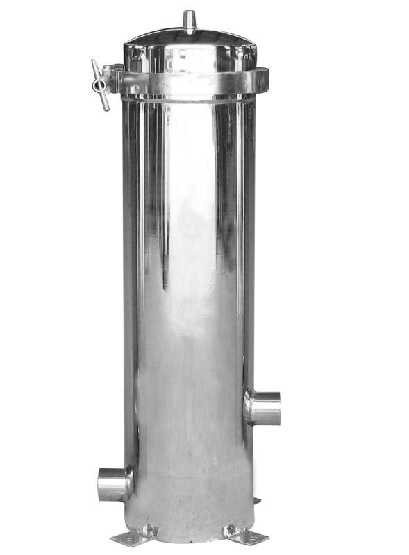 袋式過(guò)濾機(jī)是一種壓力式過(guò)濾裝置,主要有過(guò)濾筒體、過(guò)濾筒蓋和快開機(jī)構(gòu)、不銹鋼濾袋加強(qiáng)網(wǎng)等主要部件組成,濾液由過(guò)濾機(jī)外殼的旁側(cè)入口管流入濾袋,濾袋本身是裝置在加強(qiáng)網(wǎng)籃內(nèi),液體滲透過(guò)所需要細(xì)度等級(jí)的濾袋即能獲得合格的濾液,雜質(zhì)顆粒被濾袋攔截。該機(jī)更換濾袋十分方便,過(guò)濾基本無(wú)物料消耗。
